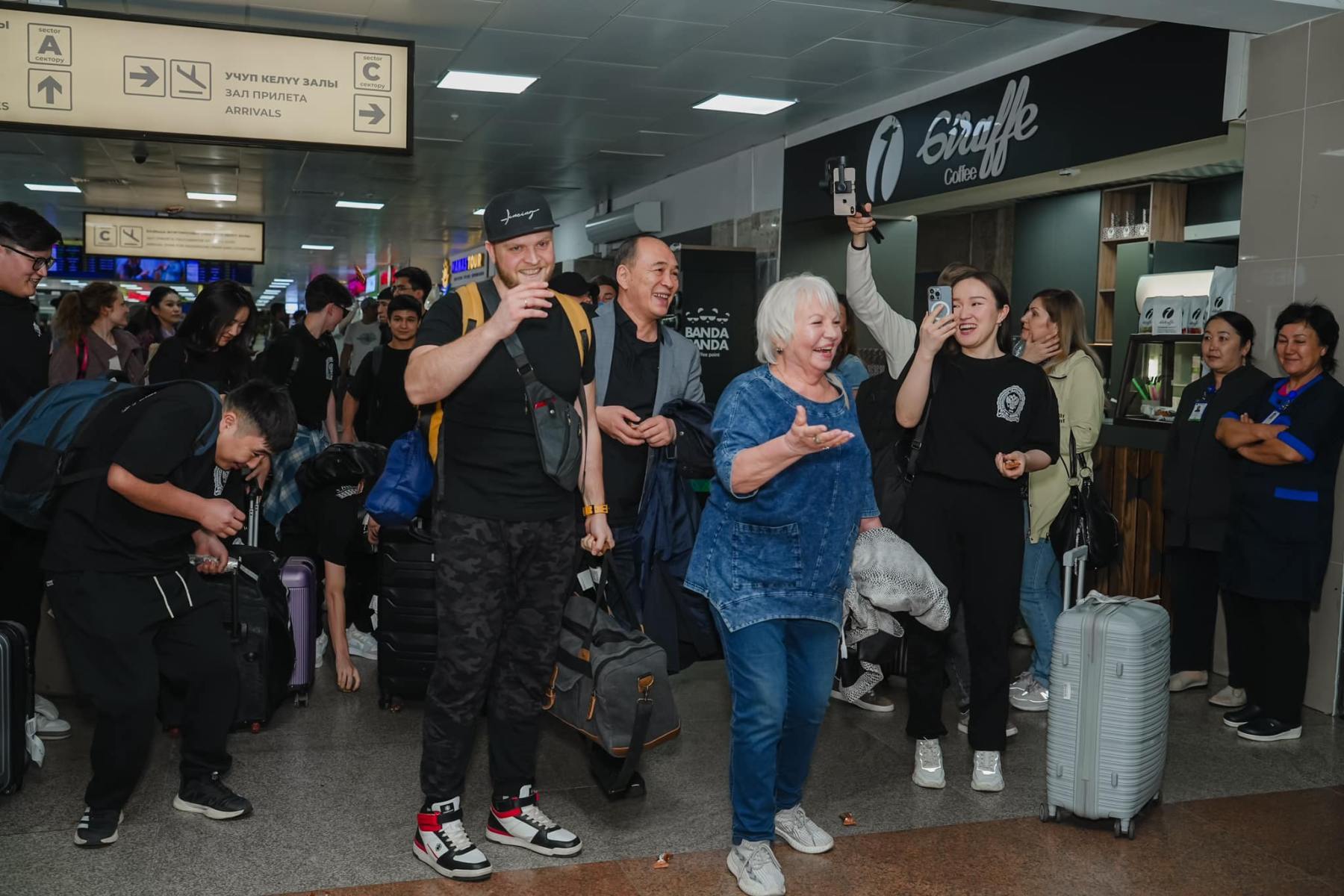 «Манас» Эл аралык аэропортунан Б.Бейшеналиева атындагы КММИУнун жамааты башында турган уюштуруучулар салтанаттуу тосуп алышты.